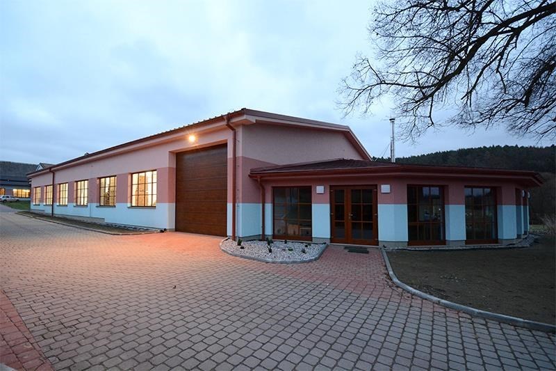 Montovaná hala je situována do krásného údolí, kde stával již v 19.století statek. Z tohoto důvodu investor zvolil kombinaci konstrukce vč. střechy a vyzděné stěny. Hala pěkně zapadá mezi starší zástavbu a nenarušuje celkový dojem areálu firmy. Ocelová konstrukce vč. nosných sloupů byla zvolena díky většímu rozponu a hlavně z důvodu využití rámové konstrukce. Montovaná střecha je standarně ze střešních PUR panelů, prosvětlení haly zajišťuje střešní hřebenový světlík s otvírkami.