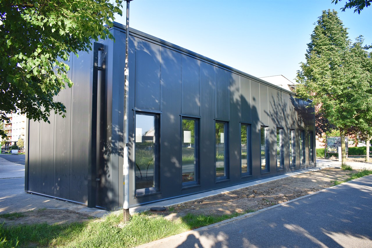 Montovaná hala slouží jako budova bistra - prodejny rychlého občerstvení na nábřeží řeky Moravy u cyklostezky na Erbenově nábřeží v Kroměříži.