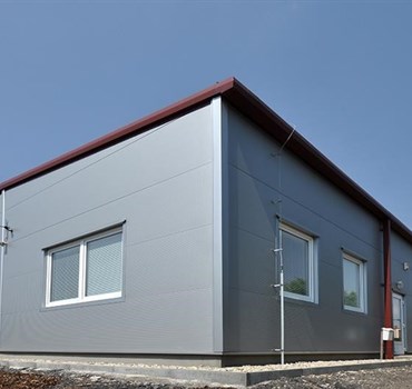 Kingspan - střešní panel KS1000 RW 80, RAL 3009 (PUR) REI 15DP3; stěnový KS 1000 AWP 80 profil box, RAL 9006 (PUR) PO EW15 DP3
