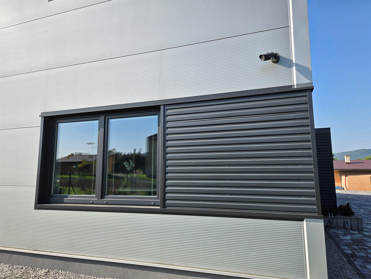 Střešní panely KINGSPAN KS 1000 RW tl. 140mm, REI 20 DP3, RAL 9002, U=0.149 (W/m²K); Stěnové panely KINGSPAN KS 1000 TL, tl. 120mm, EW/EI 30 DP3 , barva RAL 9010, RAL 9006, U=0.226 (W/m²K)