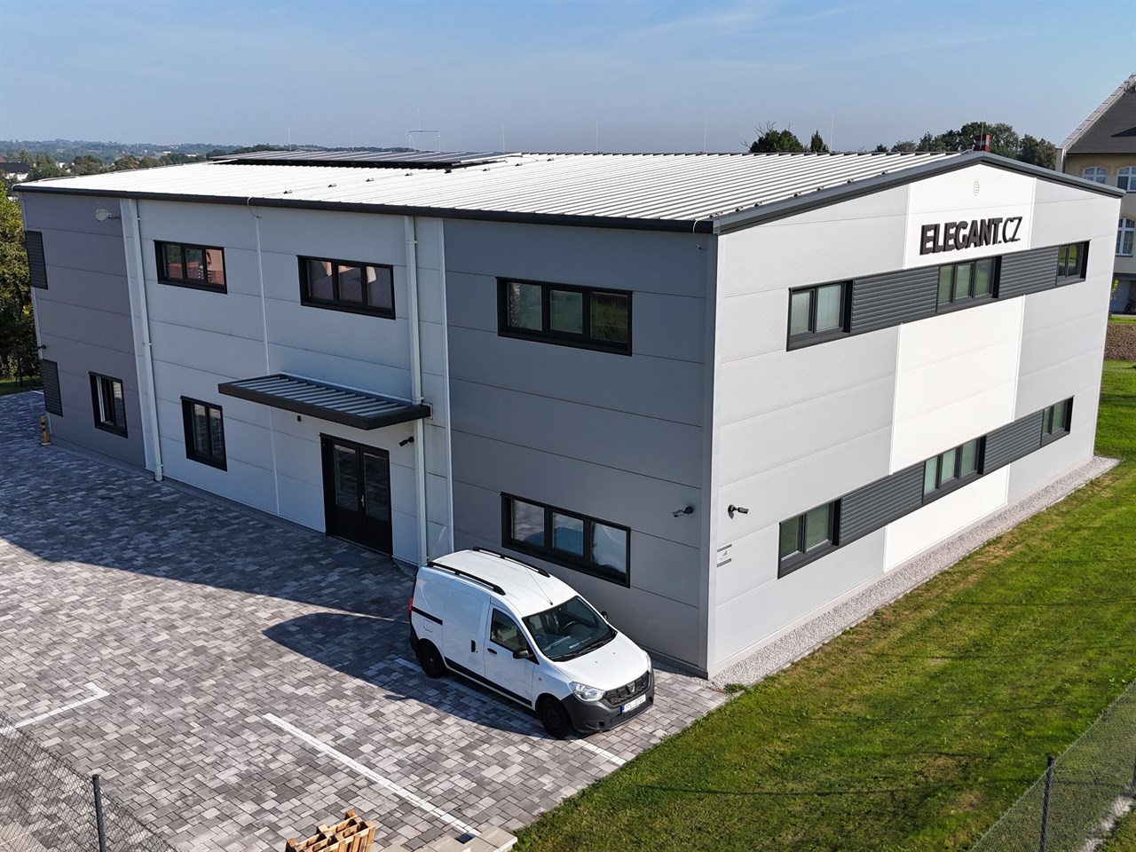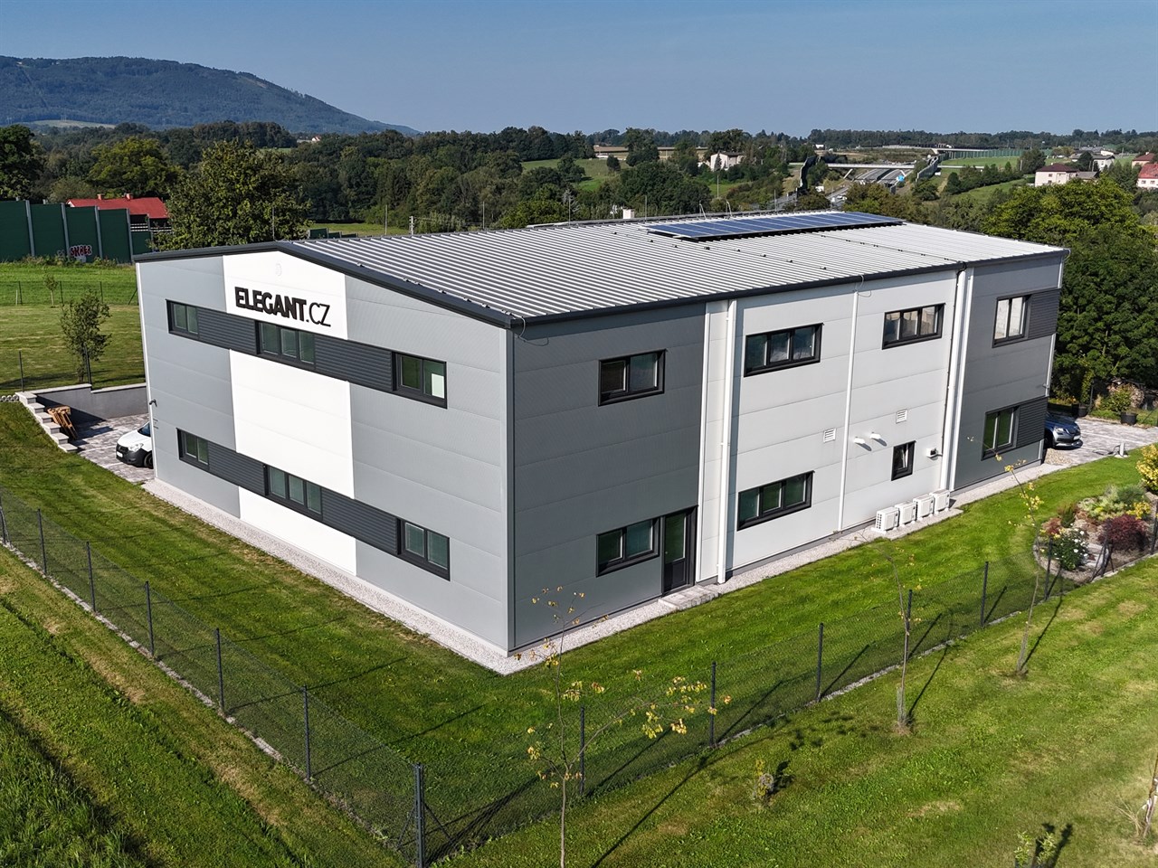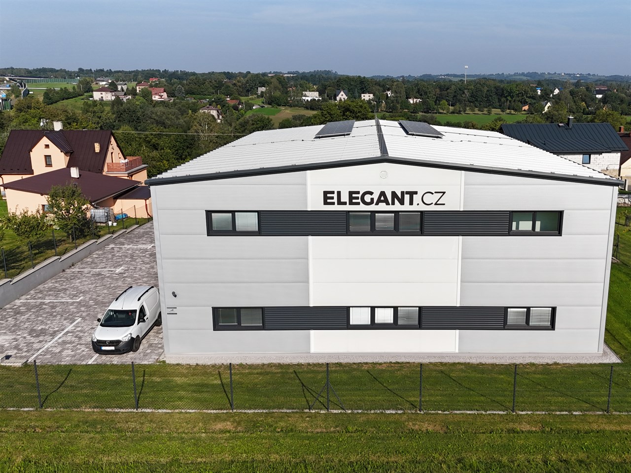 Hala slouží k uskladnění zboží (textil, oděvy) a zajišťuje kompletní firemní zázemí ELEGANT.cz. Přízemí (1. NP) je primárně vyhrazeno pro sklad, expedici a provozní kanceláře, zatímco druhé podlaží (2. NP) zahrnuje další kancelářské prostory, technické místnosti a fotoateliér. Hala je vybavena dvěma makrýzami u vstupů do budovy z nichž jedna je přetažena až k zemi a tvoří tak zároveň větrolam u vstupu.