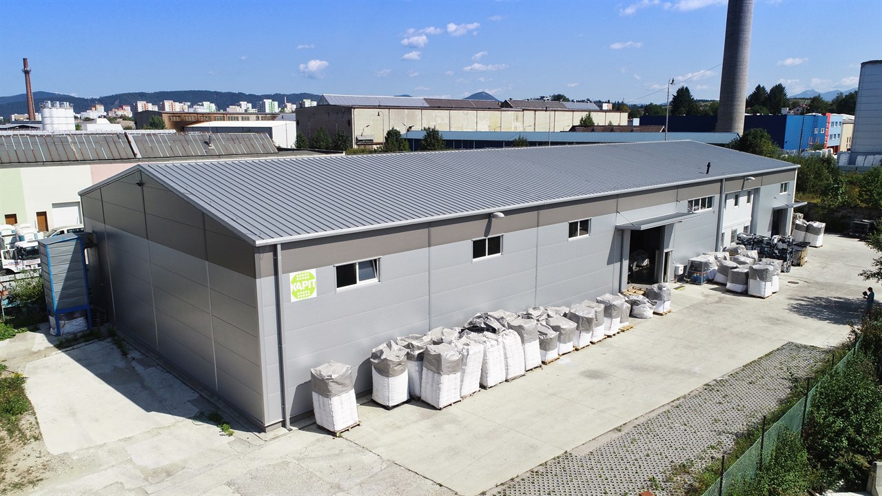 Výrobní a skladová hala Kapit v Žilině představuje moderní montovanou ocelovou halu se zajímavým řešením administrativy ve formě buňkoviště.
